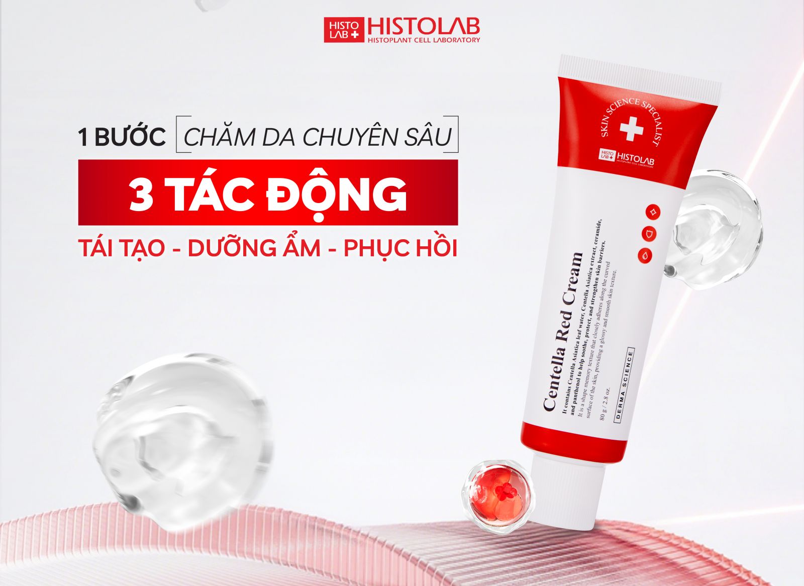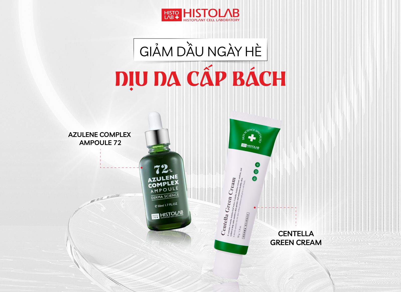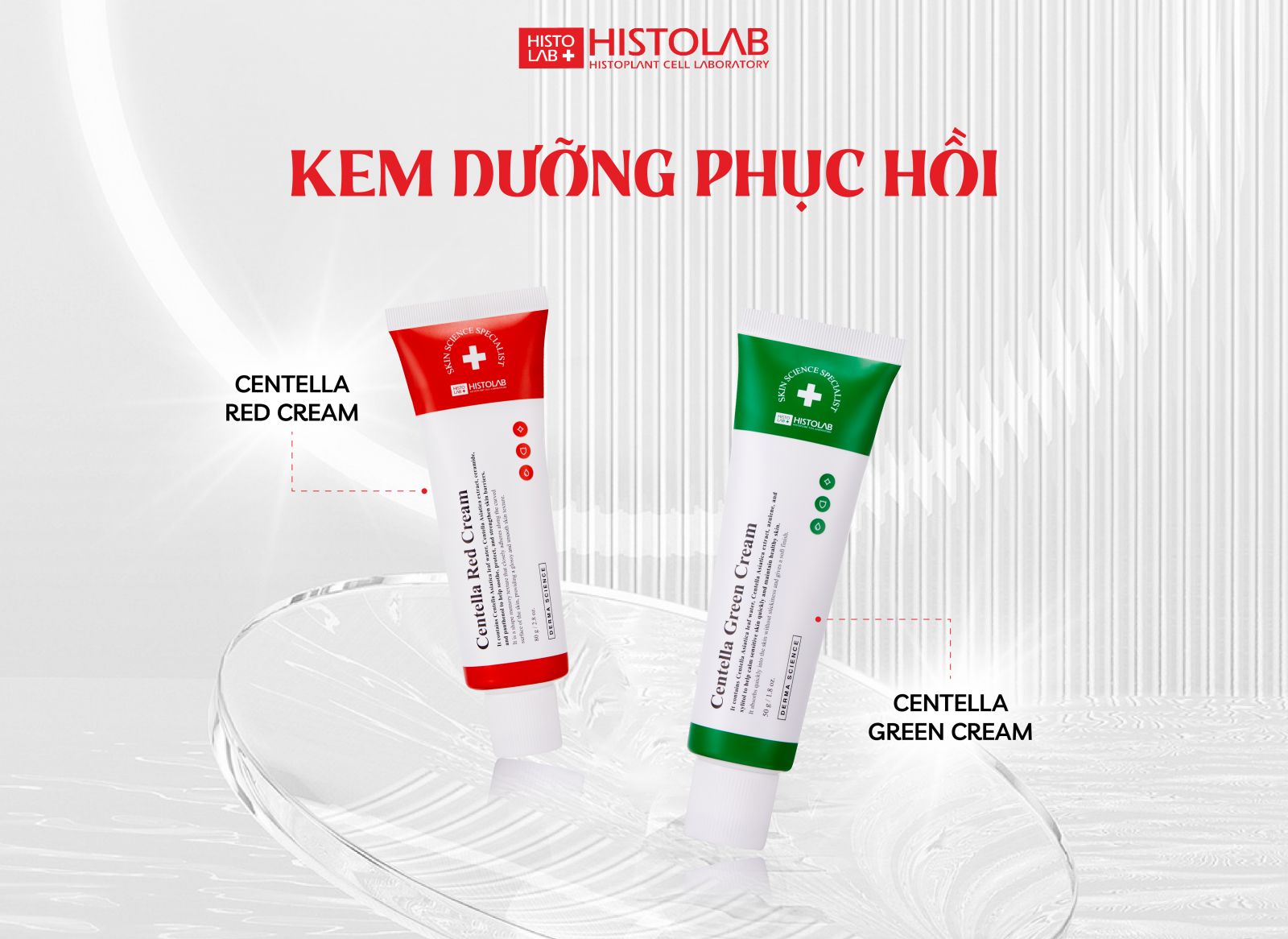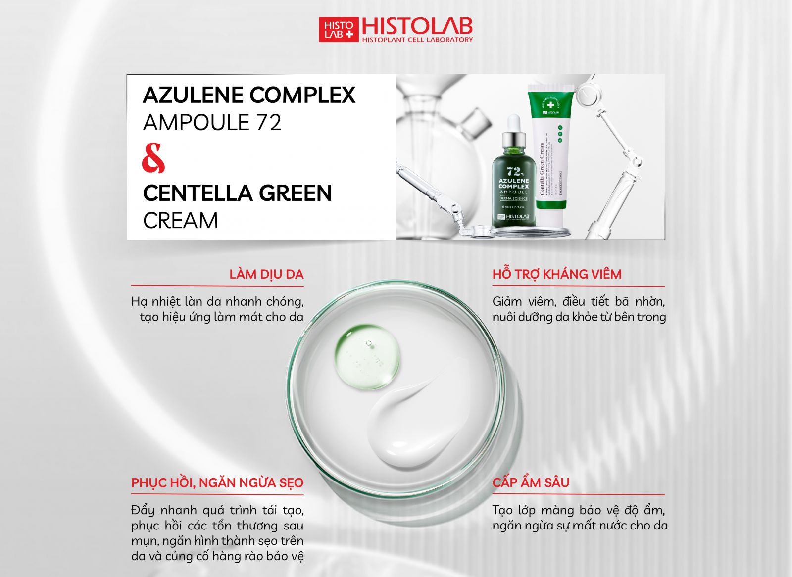 Da nhạy cảm, dễ kích ứng hoặc tổn thương sau liệu trình công nghệ cao cần một giải pháp phục hồi và làm dịu hiệu quả. Kem dưỡng Centella Green Cream và Centella Red Cream từ Histolab chính là lựa chọn tối ưu: giúp bảo vệ hàng rào da, giảm mẩn đỏ và duy trì làn da khỏe mạnh, mịn màng.